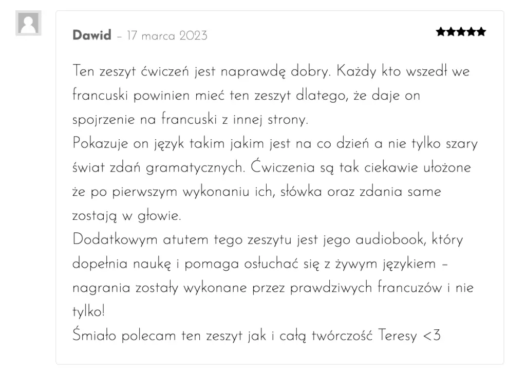 Nie każdy jednak zadowoli się samym słuchaniem (które zresztą, wiadomo, nie wystarczy). Istotna jest praktyka. Stąd pomysł na Francuski codzienny w dialogach właśnie w formie zeszytu ćwiczeń.