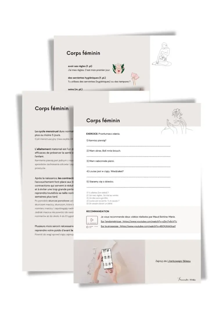 karty ćwiczeń będące częścią płatnego kursu „Kolejne 10 dni z francuskim”