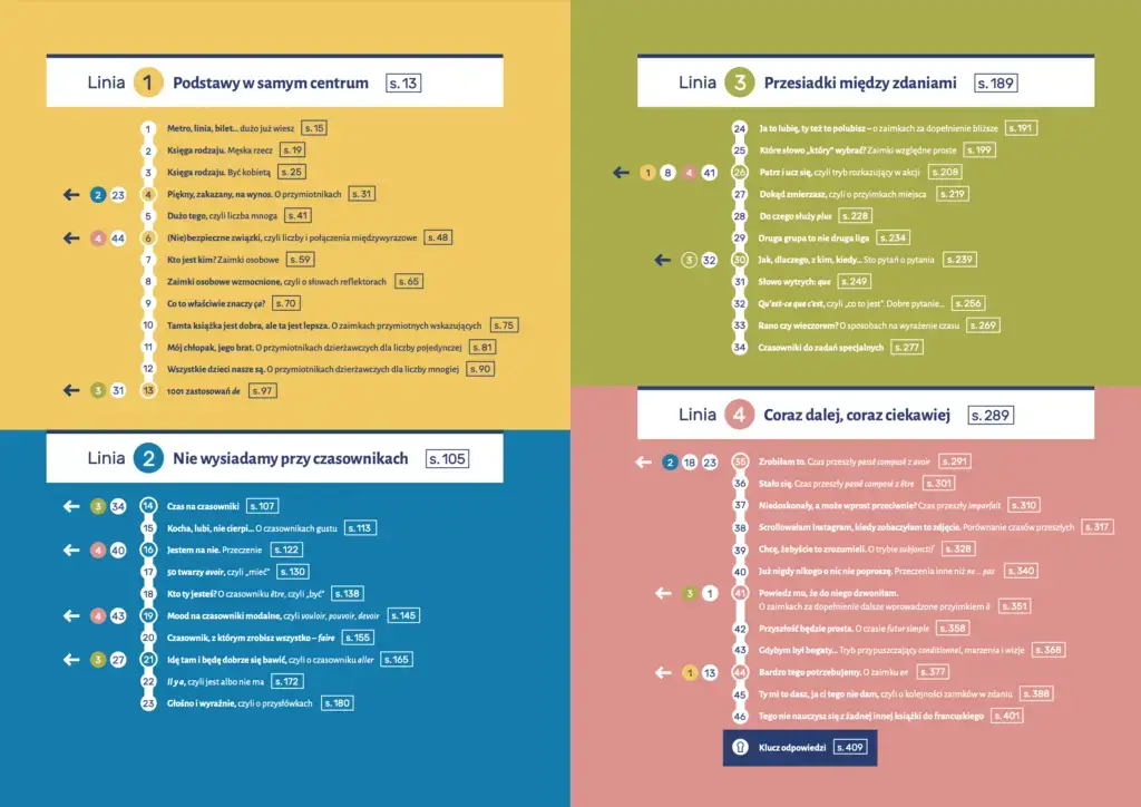 Chciałabym powiedzieć, że wszystko! Marta włożyła w niego mnóstwo serca i opakowała wiedzę w świat metra. Każdy rozdział jest inną linią metra, a podrozdziały stacjami. Można się przesiadać (nawiązania do innych podrozdziałów), regularnie pojawia się sekcja „uwaga na paluszki”.